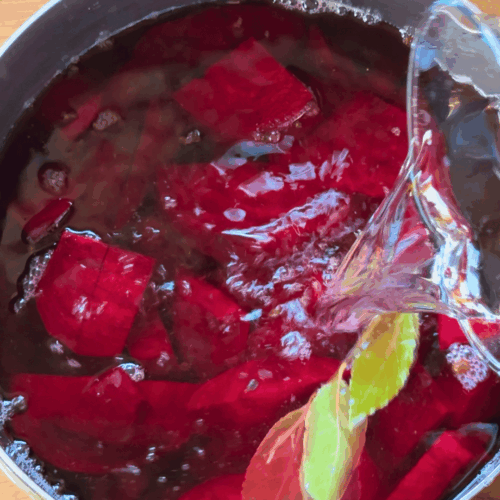 - Dolewamy zakwas z buraka i teraz doprawiamy.700 ml zakwasu z buraka, pieprz do smaku