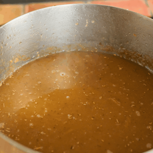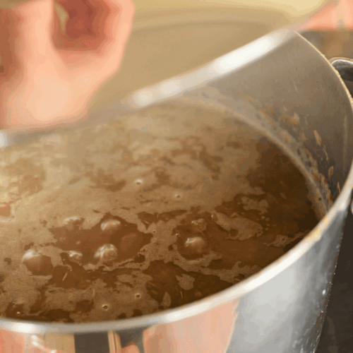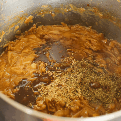 - Mieszając co kilka minut, aż cebula nabierze głębokiego brązowego koloru i się skarmelizuje.