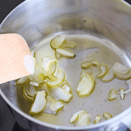 - Podsmaż na łyżkę oliwy cebulkę.1 łyżka oliwy z oliwek