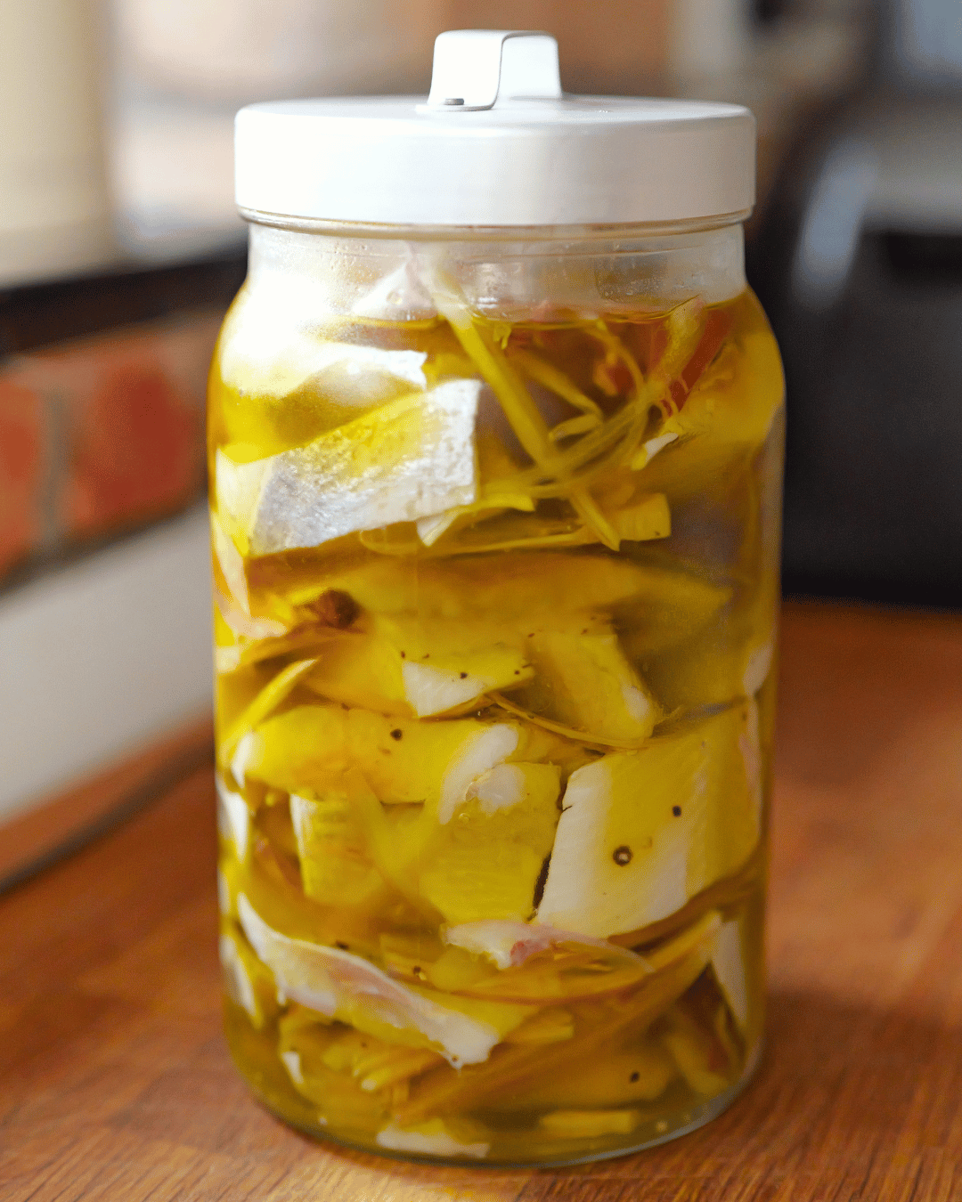 Szalotka to zdecydowanie bardziej elegancki wybór do marynowanych ryb. Ma słodszy, łagodniejszy smak i nie dominuje nad delikatnością śledzia. Jeśli jednak wolisz mocniejszy akcent cebulowy, biała cebula sparzona wrzątkiem również sprawdzi się doskonale. Sparzenie usuwa ostrość i pozostawia przyjemną słodycz. Ponadto szalotka lepiej wchłania aromaty liścia laurowego i ziela angielskiego, tworząc harmonijną całość już po jednym dniu marynowania.