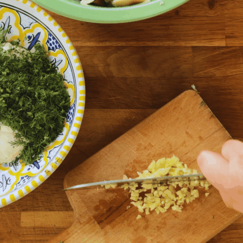 - Drobno kroimy czosnek.3-4 ząbki czosnku