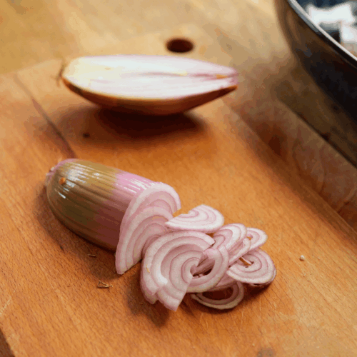 - Kroimy cebulę szalotkę w piórka.2 szt szalotki