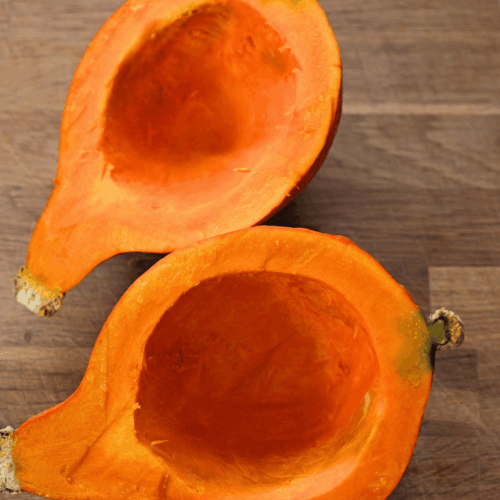 - Umyj i wydrąż dynię Hokkaido, odkrój kawałek 350g i pokrój w kostkę wraz ze skórką.350 g dyni Hokkaido