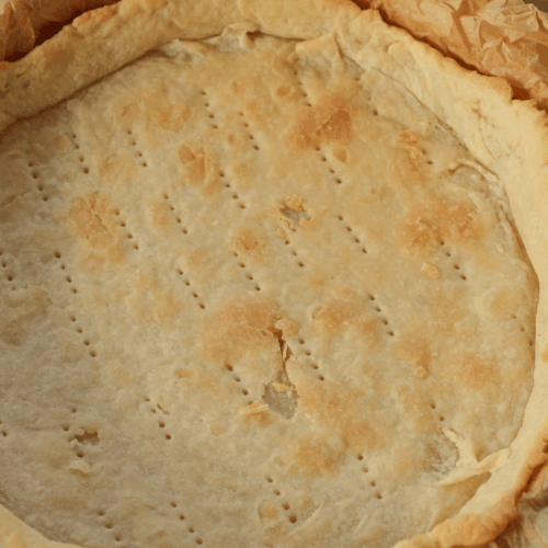 - Wyjmij ciasto z lodówki, rozwałkuj je i wyłóż foremkę o średnicy 25 cm. Ranty foremki też wyłóż ciastem, ważne aby były wysoko, na tyle aby zawinąć je o te ranty. Bo w piekarniku ciasto na rantach ma tendencje do opadania.
