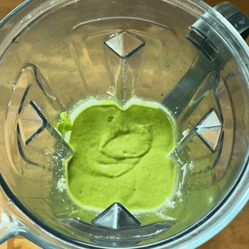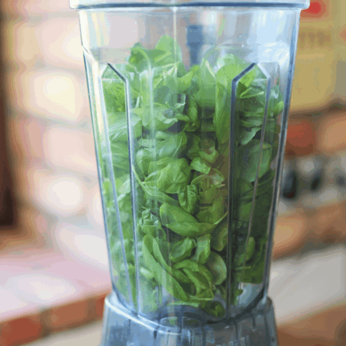 - Przekładamy listki bazylii do blendera.