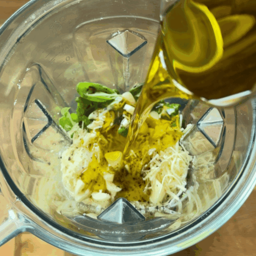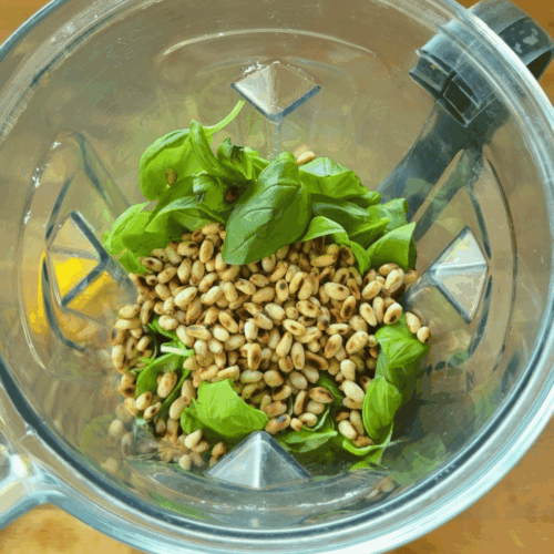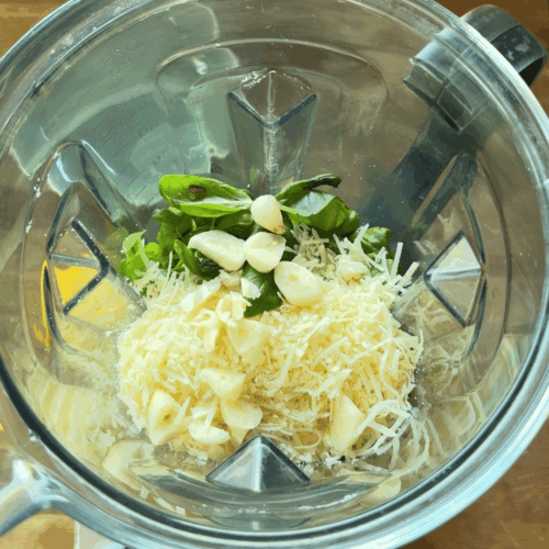 - Blendujemy. Jeżeli jest za gęste to dodajemy więcej oliwy, jeżeli za rzadkie to na przykład parmezanu.