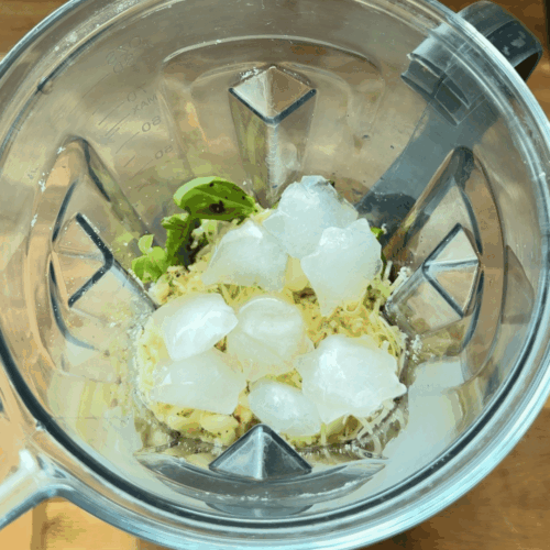 - Warto dodać kilka kostek lodu aby zachować piękny zielony kolor pesto.4-5 kostek lodu